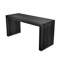 Contemporary Black Wooden Slat Bench for Entryway or Dining
