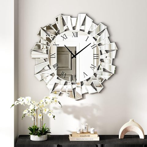 グラムクリスタルスタイルサンバーストウォールクロック大型シルバーミラークロック