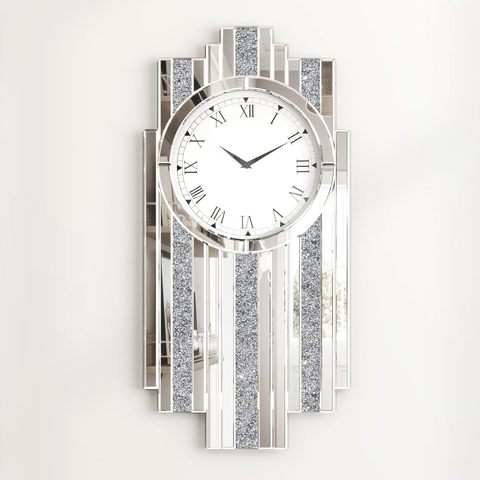 Orologio da Parete Stile Cristallo Glamour Grande Orologio a Specchio Argento