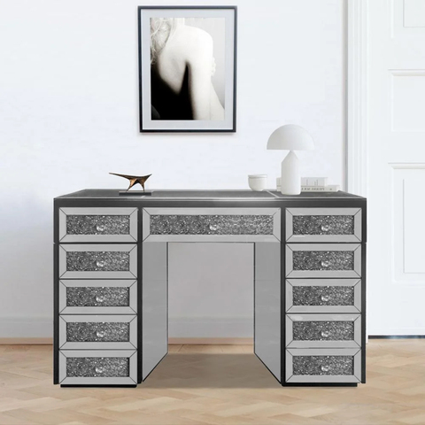 המוכר העליון חדר שינה יוקרתי 11 מגירות שולחן איפור שיקוף שולחן יהירות עם העליון זכוכית שקוף
