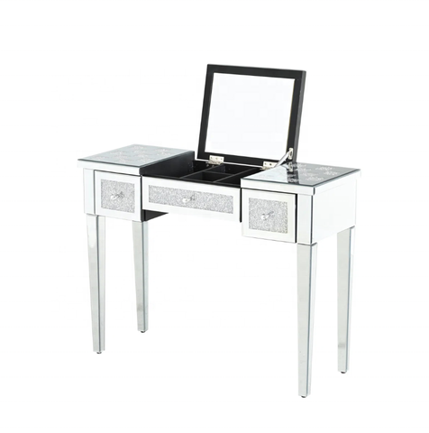 שולחן משקוף יהירות להגדיר שולחן איפור עם יהלום קריסטל, מראה, שולחן הלבשה mdf עם 2 דלפק יהירות