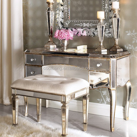ריהוט חדר שינה יוקרתי 4 מגירות שולחן איפור צרפתי עם מראה ושרפרף
